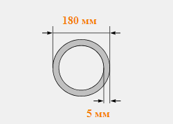 Вес 1 метра электросварной трубы прямошовной 180х5 мм равен 21.58 кг