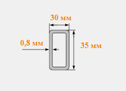 Вес 1 метра профильной трубы 35x30х0,8 равен 0.788 кг