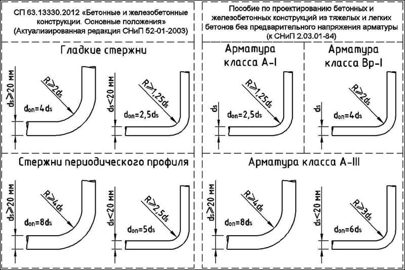 Когда стержни обладают периодическим профилем, использование загибов не является необходимым. Однако для гладких профилей потребуется применение анкеров, петель и различных крюков. Метод нахлеста чаще всего используется для армирования железобетонных плит. Размер нахлеста обязательным образом должен быть прописан в проектной документации.