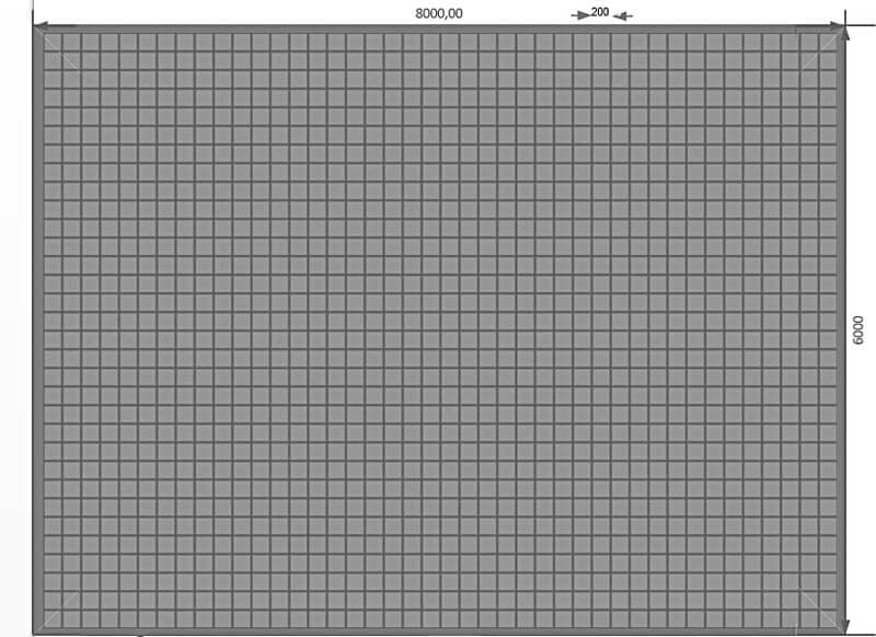 Пространство между продольными и поперечными стержнями арматуры в сетке формирует квадрат размером 20x20 см. Для фундамента размером 6x8 метров нам необходимо рассчитать количество прутьев арматуры, которые будут располагаться по каждой стороне с шагом в 20 см.