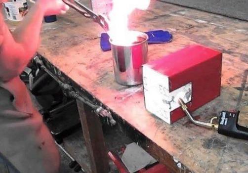 - Нагрев горна или печи. Для газопламенного нагрева выполняется установка заготовки из нержавейки и включение газовой горелки.