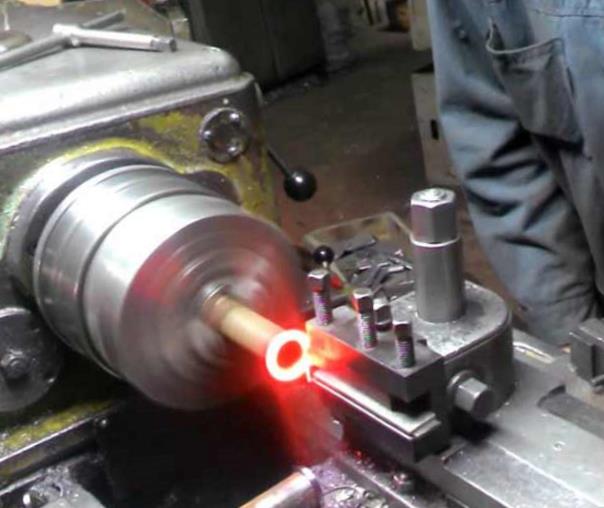 Когда заготовка нагрета, это должно происходить следующим образом. В начальной фазе деформации, когда пластичность металла максимальна, скорость деформирования увеличивается, обеспечивая изгиб сечения по естественному радиусу гиба. В конечной фазе, когда заготовка остывает, скорость уменьшают. Хотя это требует жертвы нарастающим усилием операции, таким образом достигается прочное соединение двух частей заготовки путем холодной пластической сварки.