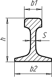 | Тип | Б1, миллиметр. | b2, миллиметры | О, мм | S, миллиметр | Вес одного метра рельса в килограммах |