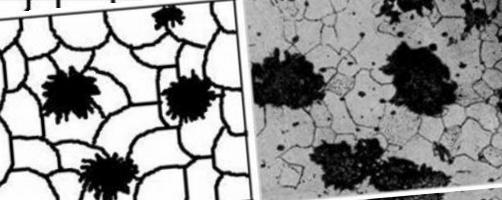 Если ускоренно охладить отливку в зоне распада, то можно получить чугун с перлитом. В этом случае структура будет включать перлит вместе с ферритом. При дальнейшем более медленном охлаждении сплава ниже 727 оС, перлит сохранится.