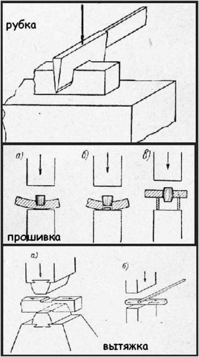 - создание отверстий (используется пробойник или прошивень на штоке);